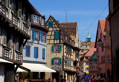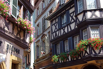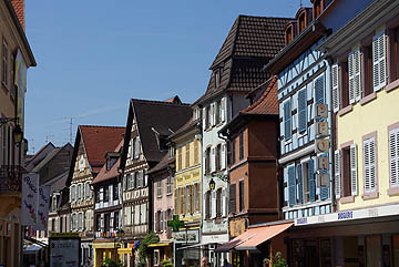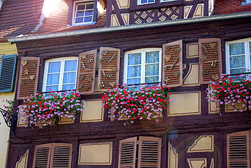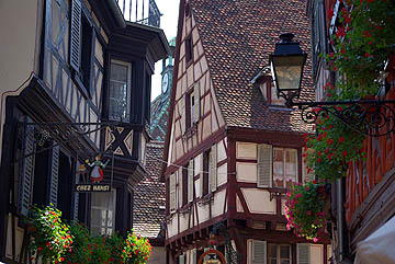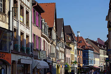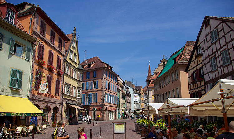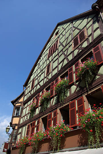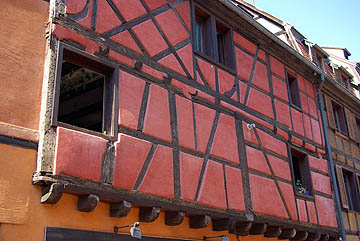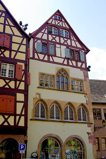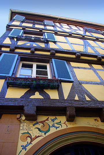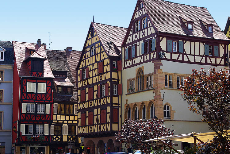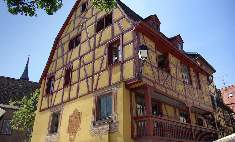 Le site de la "Capitale des vins d'Alsace" est occupé depuis 5000 ans, mais n'est devenu une vraie ville qu'à partir du XIIème siècle, au sein du Saint Empire romain-germanique. Elle ne devient française qu'en 1648, après une longue résistance. Rebelote en 1945, c'est la dernière ville de France à être libérée. Ci-dessus, rue de la Grenouillère, ci-dessous, immeuble de la place Jeanne d'Arc et façade rue Vauban datant de 1626.