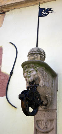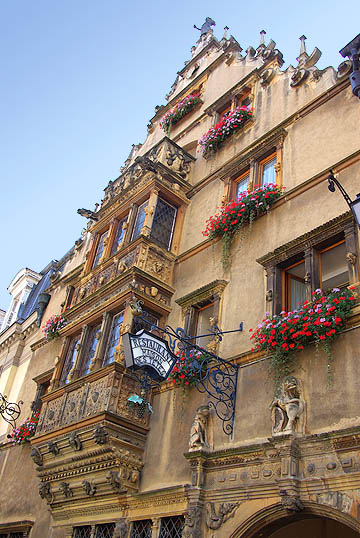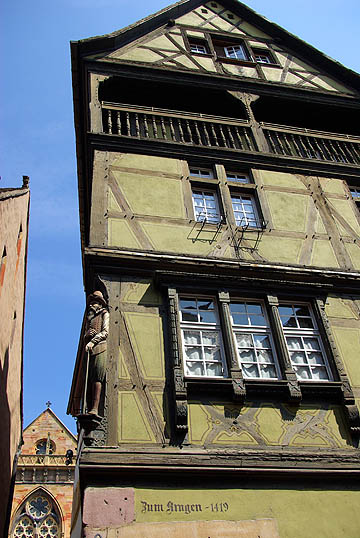 Ci-dessus à droite, la maison Adolph, l'une des plus anciennes de la ville. A gauche, la maison des Têtes (1537), à la façade très ornementée. Ci-dessous, les maisons Fragen et Pfister.