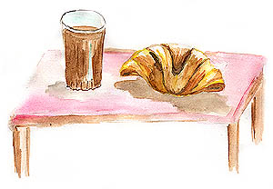 Osaka (Japon) Petit déj' unique et original : café crème avec croissants et pains au chocolat tout chauds sortis du four ! Un régal dans une boulangerie ouverte par un jeune Japonais de retour de France, on a vraiment apprécié. Pas que le poisson sec au réveil soit mauvais, mais bon...