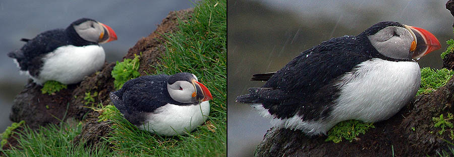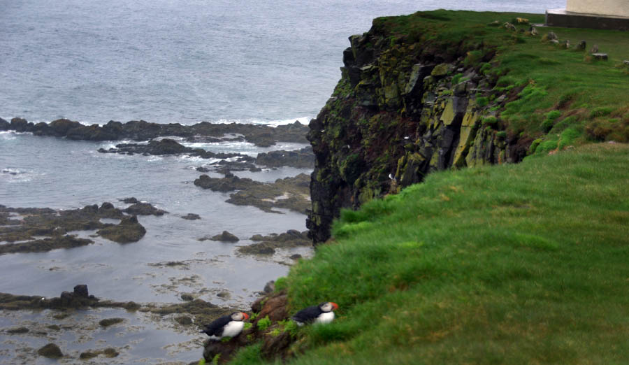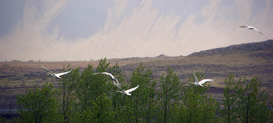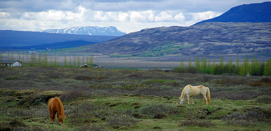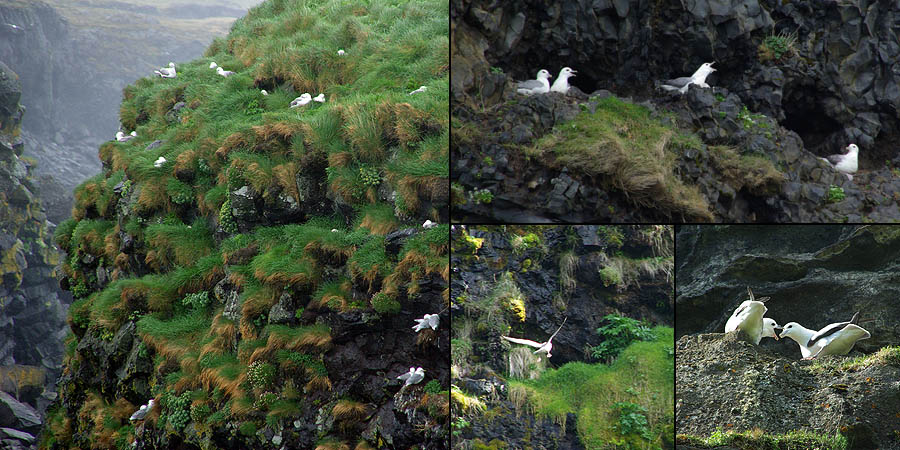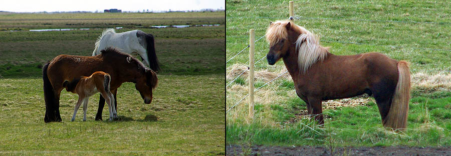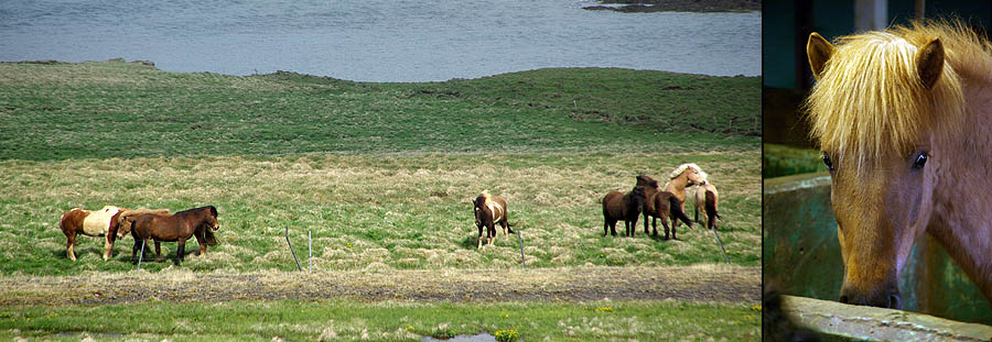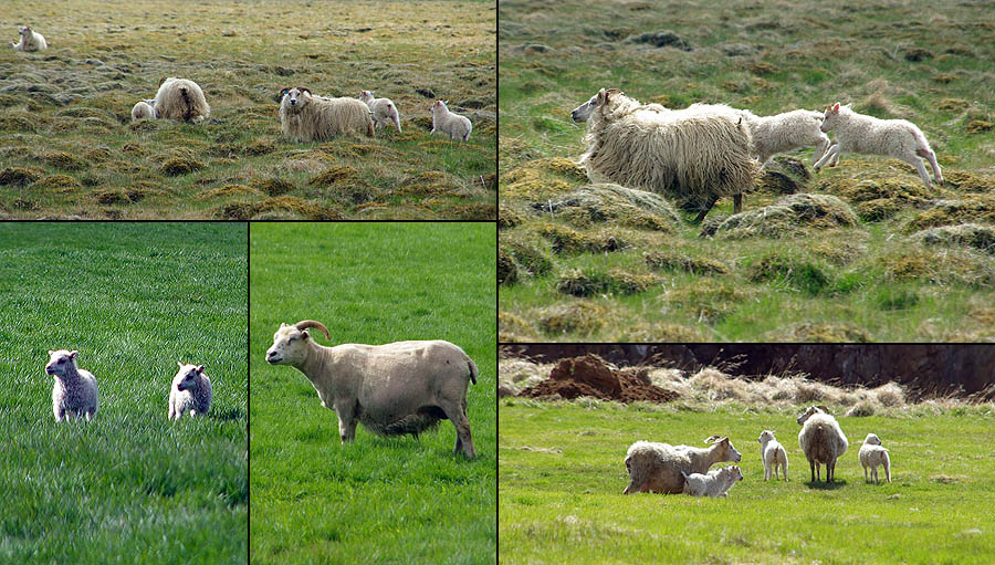 Avec son isolement extrême l'Islande a initialement, telles d'autres îles comme les Galapagos ou la Nouvelle-Zélande, une faune réduite et très spécifique. Aucun reptile ni batracien, peu d'insectes et même pas de fourmis ni - oh joie ! - de moustiques. Côté mammifères, ça ne va pas chercher loin : quelques renards polaires, qui se nourrissent de mulots, rats et souris... De loin en loin, un ours blanc arrive jusqu'ici à la dérive, mais c'est rare. Sinon, c'est à peu près tout. Du moins jusqu'à l'arrivée des hommes qui ont importé rennes, visons, lapins. ![]() Techniquement un poney, le petit cheval islandais est le descendant de ceux amenés par les Vikings et des Shetlands par les colons écossais. Il s'est adapté à l'environnement rude de l'île, perdant en taille, gagnant en force, en endurance et en sobriété. Sans croisement depuis les années 900, et l'importation d'autres races étant interdite, on peut vraiment parler de pur-sang miniature ! Il fait partie de la culture locale et est encore beaucoup utilisé de nos jours pour les loisirs, le gardiennage des troupeaux, la locomotion, voire la viande. Il a particularité d'avoir cinq allures (au lieu de trois chez les chevaux continentaux), et d'être particulièrement photogénique dans les paysages qui ont façonné sa morphologie trapue et robuste. ![]() ![]() Les mammifères marins sont, eux, très nombreux à croiser dans les eaux islandaises... mais aussi beaucoup plus difficiles à voir depuis la route n°1. Du coup on se rabat sur les moutons, eux aussi bien adaptés à la météo locale. Ils sont très nombreux, bien plus que les humains, mais on en voit peu : rangés l'hiver, ils sortent à la "belle" saison et sont libres de divaguer partout sur l'île, pratiquement sans clôture. Du coup les rassembler est toute une affaire, et l'occasion d'une fête, le Réttir. Et comme ils sont presque sauvages, ceux-là ne se déplacent pas en troupeaux, mais plutôt en petits groupes familiaux. Faut dire, ils n'ont pas de prédateurs, ça aide. ![]()