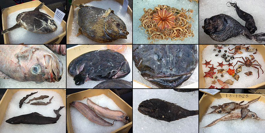 ![]() ![]() ![]() De nombreuses autres espèces peuplent le ciel islandais, migratrices ou résidentes, cygnes, oies, diverses variantes de mouettes, mais honnêtement nos compétences ornithologiques sont limitées. Si vous les reconnaissez en détail, on est preneurs ! ![]() Ces sternes arctiques semblent préférer le confort et la relative chaleur du bitume. C'est sûr, ce n'est pas un peu plus haut au Groenland complètement dépourvu de routes qu'elles vont en trouver beaucoup. ![]() ![]() ![]() ![]() Bel étourneau dans les rues de Reykjavik. ![]() Une expo sur le port de la capitale donnait l'occasion d'"admirer" sur glace quelques-uns des magnifiques poissons pêchés dans le coin, parmi lesquels le poisson-soleil (tunglfiskir ou mola mola), la lamproie (gudlax), l'angler des profondeurs (skötuselur), le poisson à crocs (bjùgtanni), le requin-feuille (raudhàfur), le poisson-rat (geirnyt) ou encore le crabe-roi rouge (kòngakrabbi). Euh... en fait, on les préfère en filets siouplait ! ![]() | |||||