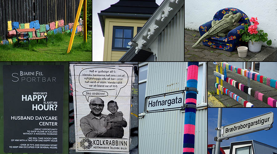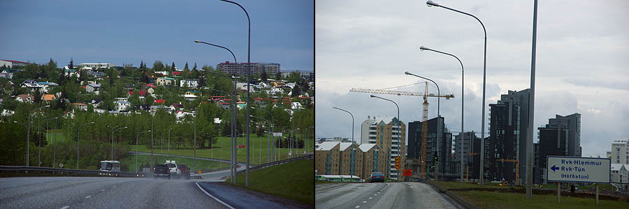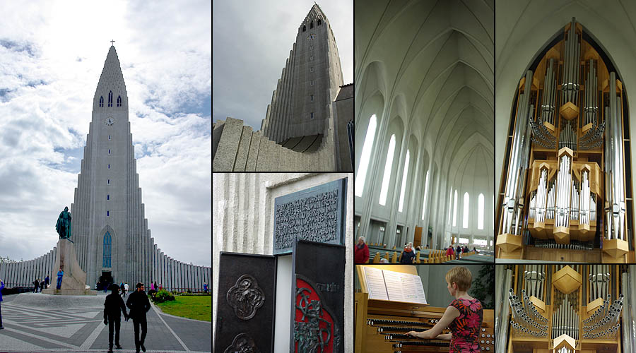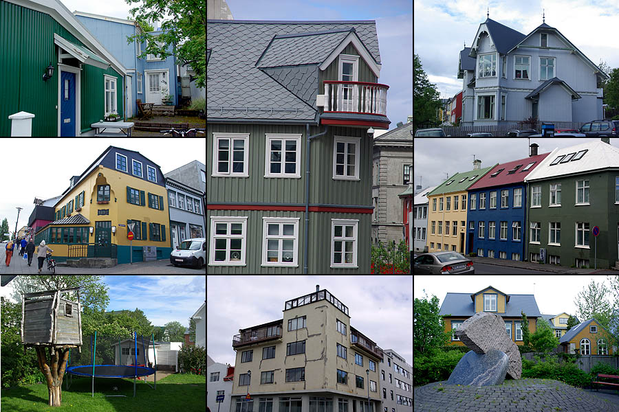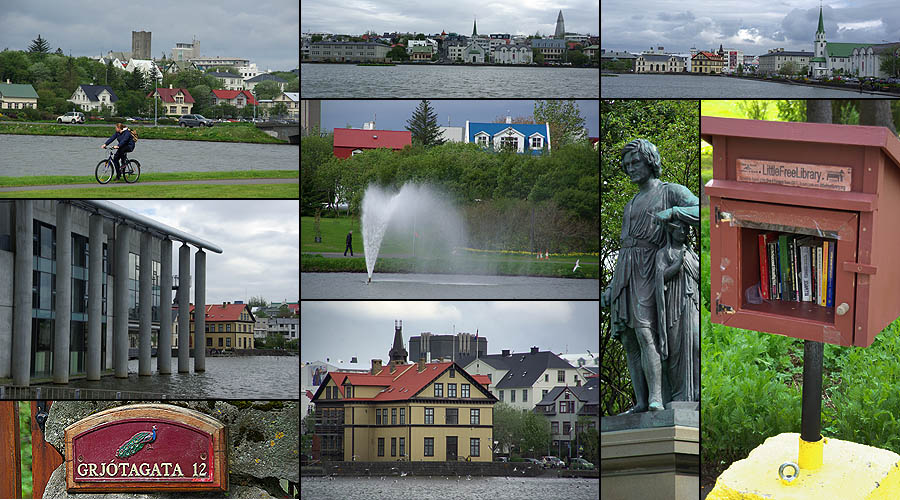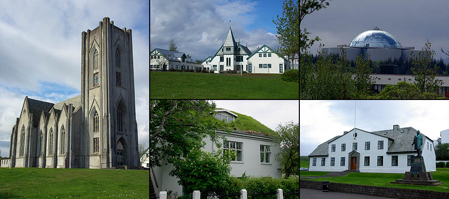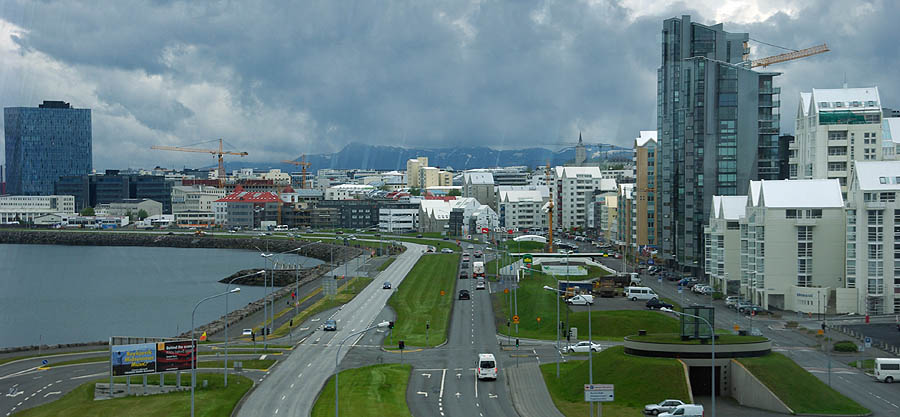 ![]() Comme dans d'autres villes célèbres, LE monument incontournable ici est l'opéra moderne, nommé "la Harpe". Ce gros pavé de verre posé sur l'eau du port est censé rappeler les cristaux de basalte qui se forment naturellement sur l'île. Pas super gai comme architecture, mais ça ne manque pas d'allure. Il a coûté 164 millions d'euros, essentiellement supporté par les impôts locaux puisque les banques qui l'avaient commandé ont fait faillite entre temps, il est complètement disproportionné par rapport à la population. Heureusement, il est très fréquenté par les Islandais généralement férus de culture (un dicton du coin : "une moitié des Islandais écrit des livres, l'autre moitié les lit"). Le reste du complexe qui devait aller avec est à l'arrêt pour le moment. ![]() ![]() Mine de rien, la ville est relativement étendue, car presque aucun bâtiment ne dépasse deux étages, les rues sont larges et les espaces verts nombreux. Le petit centre semi-piétonnier concentre les commerces, et des bus gratuits se chargent d'emmener les gens vers les grands malls en périphérie. De là rayonnent les rues résidentielles aux maisons souvent colorées, faites de pierre de lave, de bois, et plus généralement de tôle ondulée. ![]() ![]() ![]() ![]() Hallgrimskirkja, la cathédrale, est aussi dessinée en forme d'orgues basaltiques, mais en blanc cette fois. Un des symboles de la ville, elle a été bâtie de 1945 à 1986. Sa flèche culmine à 75 mètres et son orgue compte 5200 tuyaux. ![]() Proche de la cathédrale, voici le musée Einar Jònsson (1874-1954), le plus important sculpteur islandais. Il a lui-même conçu le bâtiment, devenu en 1923 le premier musée du pays. ![]() Ville très verte, Reykjavik aligne ses pelouses jusque sur le toit de certaines maisons ! Le gros dôme ci-dessous à droite, surnommé la Perle, est un ancien réservoir géothermique géant, devenu un musée. L'église style années 30 est Landakötskirkja. ![]() Autour du lac Tjòrnin s'alignent de belles grandes maisons. Le temps change du tout au tout en quelques minutes. ![]() Comme dans toute ville islandaise, le port est un point focal. La perspective le tasse contre les sommets enneigés, et s'y côtoient petits bateaux de pêche, grands navires militaires et ferries à destination notamment du Groenland. Ceux qui désservent le Danemark et les îles Féroé, curieusement, arrivent de l'autre côté de l'île. Peut-être pour conserver un minimum d'activité à la côte est ? ![]() Fermée sur elle-même depuis des siècles, la population est remarquablement homogène, au point d'avoir des problèmes de consanguinité. Tout mariage doit être validé par des tests ! En gros, les gens sont soit d'origine viking (les blonds, et ils sont très blonds), soit irlandaise (les roux et les châtains). Le rose, on ne sait pas encore. En dehors de cela, très peu d'étrangers y résident (à peine 2% de la population). ![]()