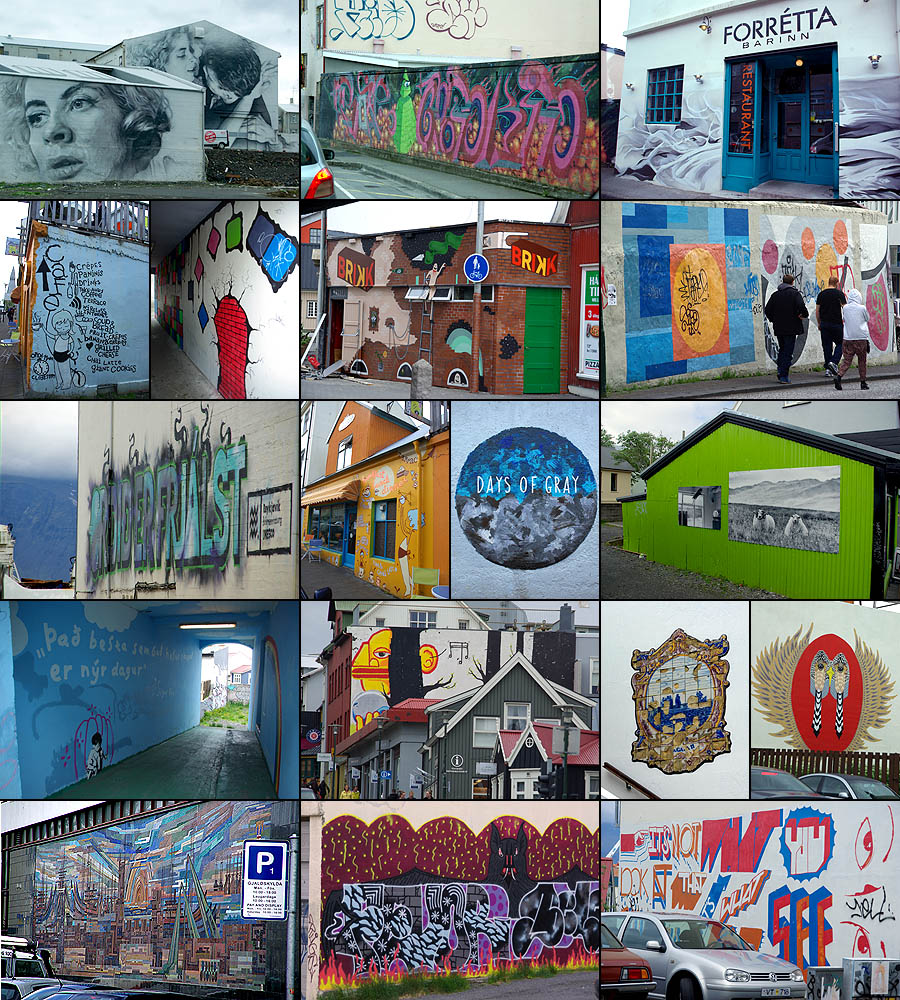 ![]() Est-ce pour égayer la ville pendant les longs mois d'hiver ? Les murs sont couverts de fresques de tous les styles. ![]() ![]() | ||||||