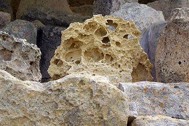 Le calaire est moins difficile à tailler pour faire les temples, mais aussi plus fragile, surtout ainsi exposé au bord de mer.