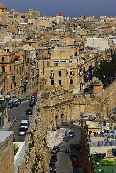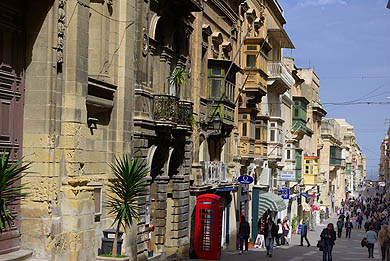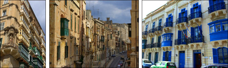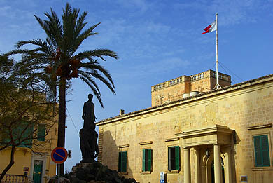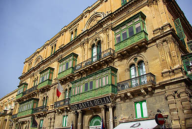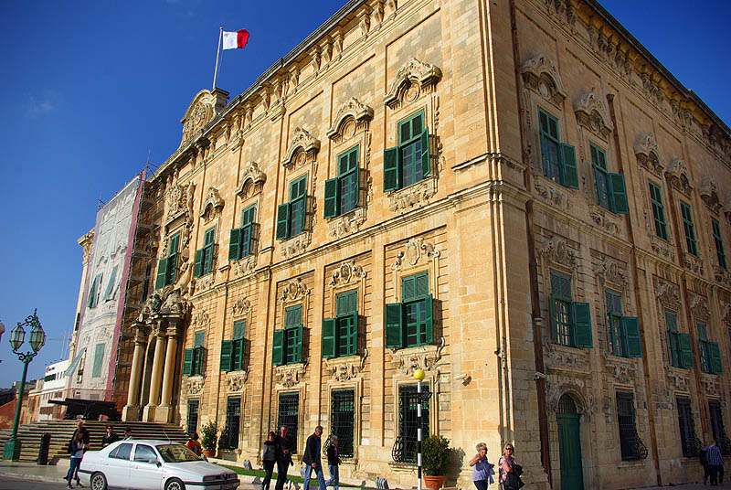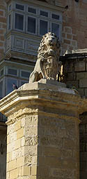 ![]() Une des caractéristiques de La Valette, ces imposantes "auberges" parsèment la ville. Il y en a une par "langue", ou région d'origine des chevaliers. A la fois casernes, quartier général et hébergement, elles leurs permettaient de se retrouver entre compatriotes dans cette cité fondamentalement cosmopolite. Aujourd'hui, la plupart est transformée en hôtels de luxe ou surtout en bâtiments administratifs. Ainsi, l'auberge de Castille, ci-dessus, est devenue le bureau du premier ministre. Ci-dessous à droite, celle d'Aragon a été peu modifiée au cours des siècles et a presque conservé sa sobriété d'origine, quand ses soeurs ont pour la plupart cédé au faste (décadent ?) des siècles plus riches.