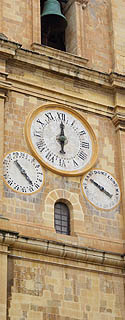 ![]() ![]() Détail du sol du couloir dans le palais des Grands Maîtres. ![]() ![]() Si les chevaliers, si nobles et fiers, avaient su à quel point leur symbole se retrouverait dévoyé en pieds de lampe, mugs, hochets, T-shirts hideux... ![]() ![]() Ces horloges, dans la Casa Rocca Piccola et en façade de la co-cathédrale St Jean, sont un peu spéciales... Voyez-vous pourquoi ? Typiquement maltaises, elles n'ont qu'une seule aiguille ! On lit les minutes par l'intervale entre les heures. Original, mais peu précis et nécessitant d'être remonté plusieurs fois par jour. ![]() ![]() Les pointes de la croix de Malte correspondent aux huit origines des premiers chevaliers. ![]() Les symboles de crânes sont omniprésents dans la co-cathédrale. ![]() ![]() Encensoir en argent massif. ![]() Christ au musée St Jean étonnant de modernité. ![]() Pannonceau explicite au théâtre Manoel |