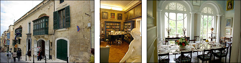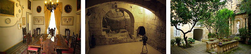 A côté du palais des Grands Maîtres, le musée de l'armurerie expose de superbes pièces, surtout les armures des grands maîtres eux-mêmes. Certaines sont étrangement familières... c'est parce qu'ils les portent sur leurs plus célèbres portraits, où elles sont reproduites avec minutie par exemple par Le Caravage dont la toile est au Louvre. Les heaumes sont particulièrement délirants, une fois la visière baissée les chevaliers étaient certes protégés et impressionnants, mais ils ne devaient absolument plus rien voir ! La section des armes est plus classique, mais on y voit quelques pièces étonnantes, comme les premiers lance-roquettes dès le Moyen-âge, ou encore ci-dessous à droite un fusil de la Renaissance à air comprimé. ![]() ![]() ![]() La charmante Casa Rocca Piccola, construite vers 1580, était celle d'un amiral de l'ordre de Malte. Toujours habitée aujourd'hui, on la visite en partie, occasion unique de découvrir un intérieur de Chevalier "moderne", avec ses bibliothèques, chapelle privée, salle à manger, chambres, reliques historiques... Au sous-sol, on accède à un réseau d'anciens puits qui servit d'abri pendant les terribles bombardements de la Seconde Guerre mondiale. La famille des chevaliers les ouvrit à la population du quartier, accueillant plus de 150 personnes. ![]()