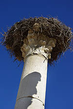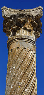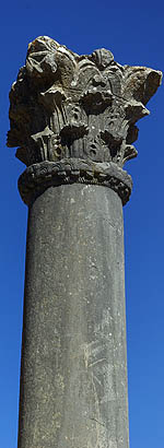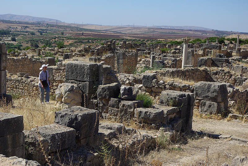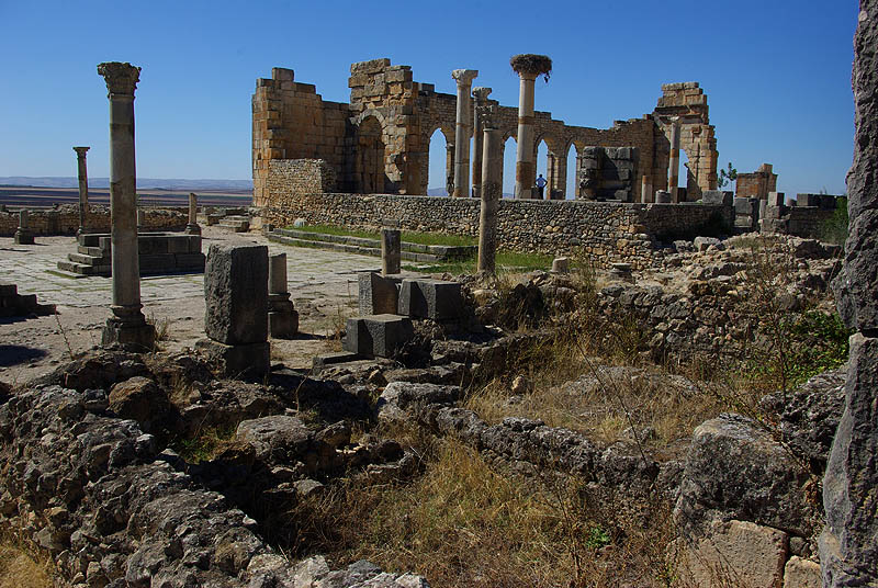 ![]() La ville tire son nom des fleurs de volubilis, ou walili. ![]() Comme les minarets et les rares toits pointus, les colonnes antiques accueillent des nids de cigogne.