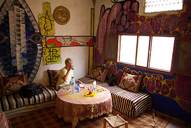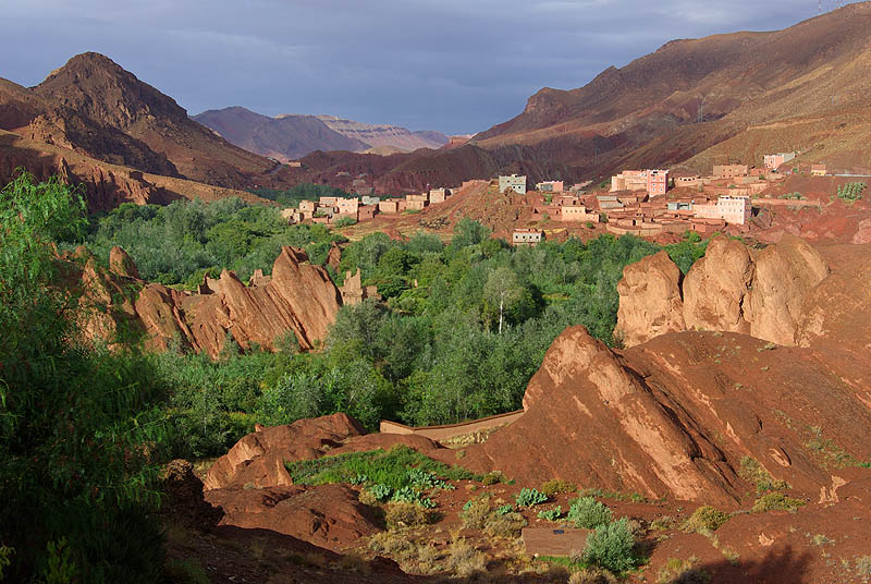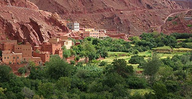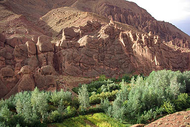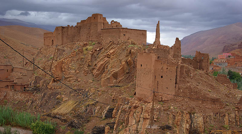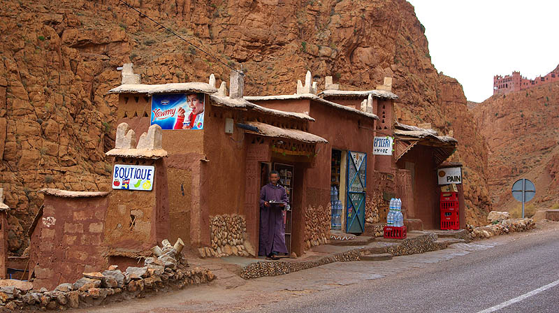![]() Une épicerie en bord de route. Eau, pain, produits de base. Pour des courses plus complètes, il faut redscendre à Boumaine du Dadès, sur la route entre l'est et la côte. Certains villages agricoles ou touristiques sont toujours actifs, d'autres sont aujourd'hui en ruine, leurs tours de pisé réintégrant peu à peu la montagne. ![]() ![]() | ||||||||