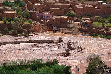 En reprenant la route vers Ouarzazate, on voit tout du long des groupes de gens assis sur ce qu'il reste des rives, attendant de pouvoir traverser pour rentrer chez eux à gué. Vu la violence des flots, ils ont dû y passer un moment... ![]() | ||||||||||||||||