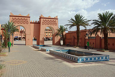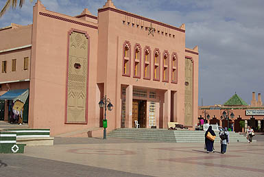 ![]() La ville elle-même ressemble un peu à un décor, avec ses grandes et belles avenues au cordeau (c'était autrefois une ville de garnison), ou encore la vitrine d'un Maroc à la fois contemporain et fier de ses traditions. Les bâtiments modernes reprennent souvent la forme des ksars à créneaux, ce qui donne une agréable unité. ![]()