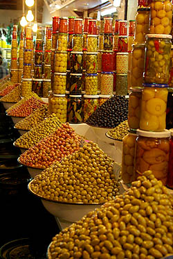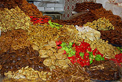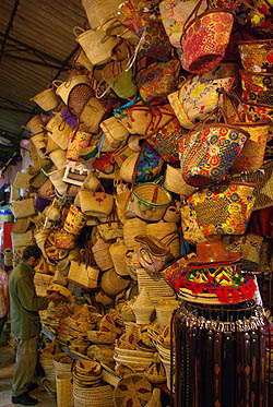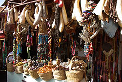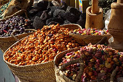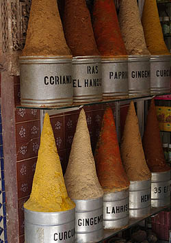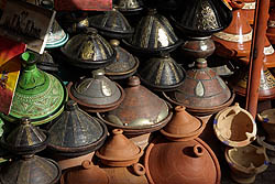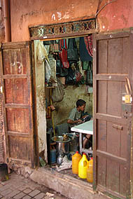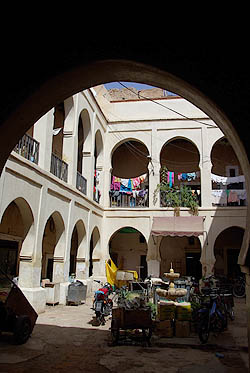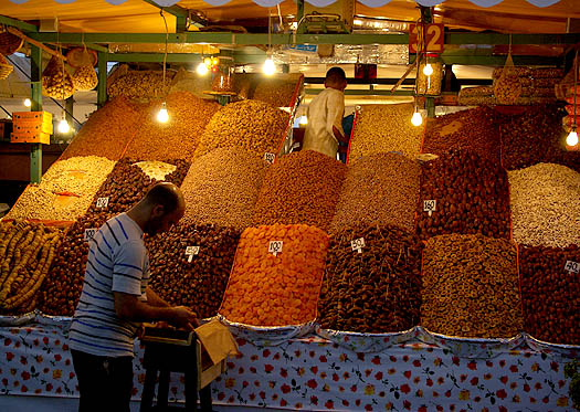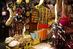 La médina comporte 135 foundouks, ou caravansérails, comme celui ci-dessus à gauche. Ils sont restaurés, mais heureusement pour améliorer les conditions de vie des habitants, pas pour y caser de nouveaux hôtels de luxe. Les marchés offrent une accumulation de marchandises assez hallucinante, on a l'impression qu'ils ont du stock pour les décennies à venir ! ![]()