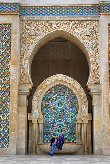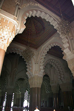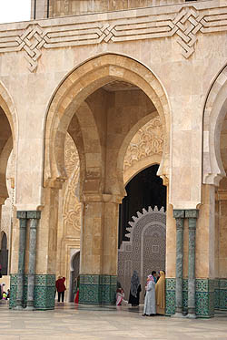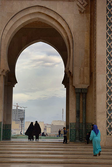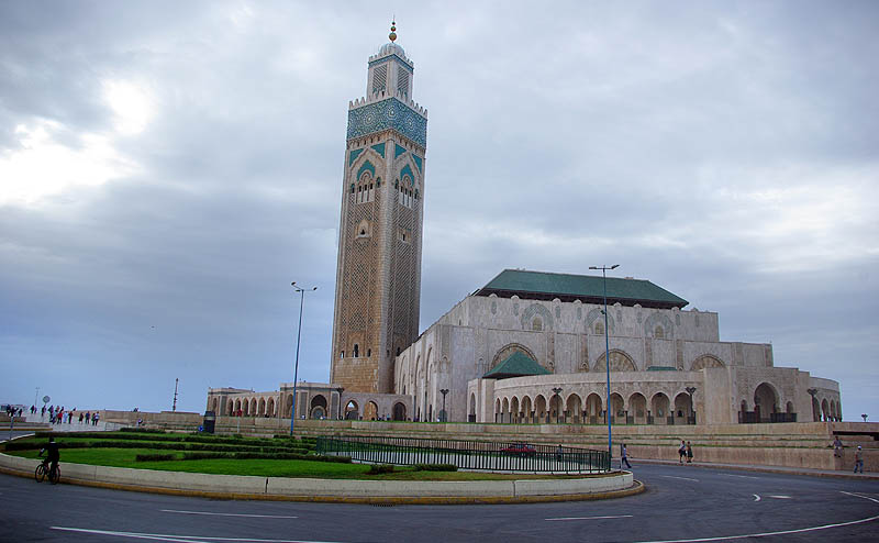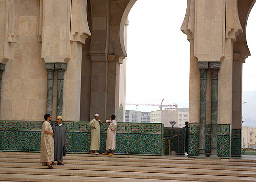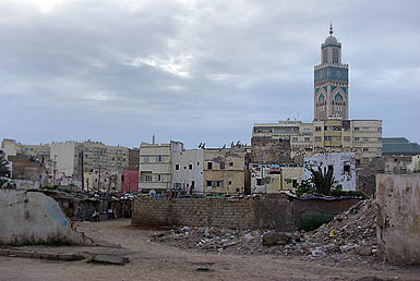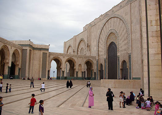 Seule mosquée en activité accessible aux non-musulmans, mais contre un ticket à 12 Euros qui nous a dissuadés, Hassan II est la plus grande mosquée du Maghreb. Inaugurée en août 1993, construite par le groupe Bouygues pour un budget d'un à deux milliards de dollars, son minaret s'élève à 200 mètres au-dessus des bidonvilles, qui commencent seulement à être remplacés par des immeubles modernes. ![]()