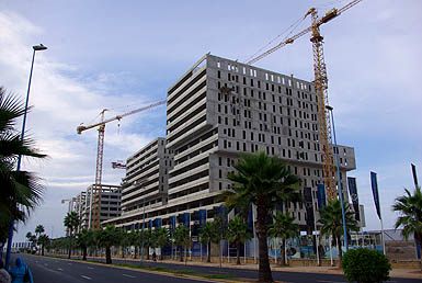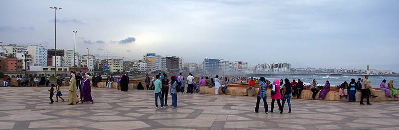 On a voulu longer les remparts le long de la côte pour rejoindre la mosquée Hassan II, mais ce n'est pas une bonne idée ! On marche des kilomètres entre la digue, le port industriel et d'interminables chantiers d'immeubles de luxe d'un côté, et les murailles ininterrompues de l'autre. Casablanca se rêve déjà ville lumière, moderne et scintillante... Il faudra voir quand ce sera fini, alors. ![]()