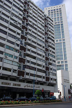 Les immeubles art-déco tombent souvent en décrépitude, au profit de constructions en béton moderne. Dommage, car ce serait un patrimoine à conserver... Ci-dessus à droite, LA tour de bureaux "Twin Center".