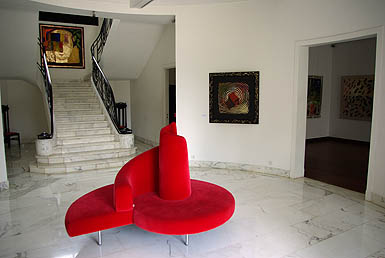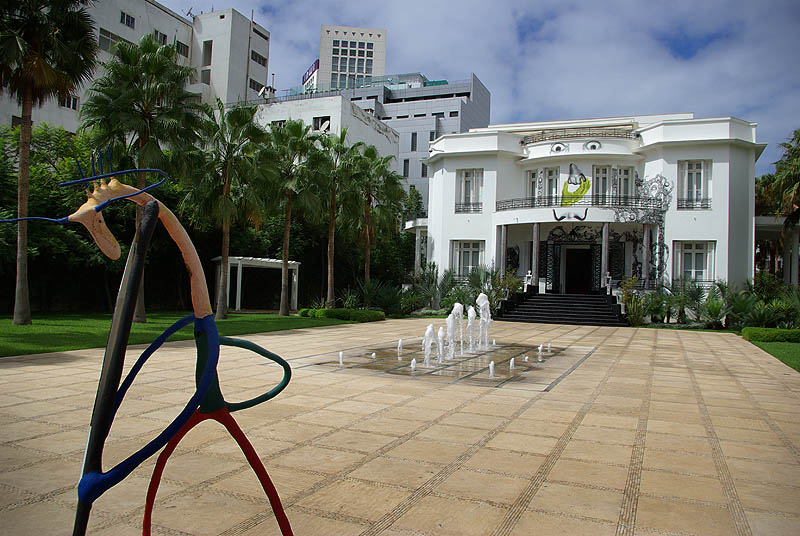 ![]() Le soir en bord de mer, à côté de la mosquée, c'est LE lieu de promenade des jeunes gens et des familles. Gare aux gamins pickpockets pas toujours discrets et qui se font taper dessus par les ménagères en colère, sous le regard impassible des flics. Retour par la médina, restée vivante, mais un peu tristounette en comparaison de celle des villes touristiques. Il faut dire, le temps maussade et lourd n'aidait pas. ![]() ![]() Le contraste est grand avec la Villa des Arts, installée dans une belle maison art-déco de 1930, qui présente des oeuvres contemporaines.