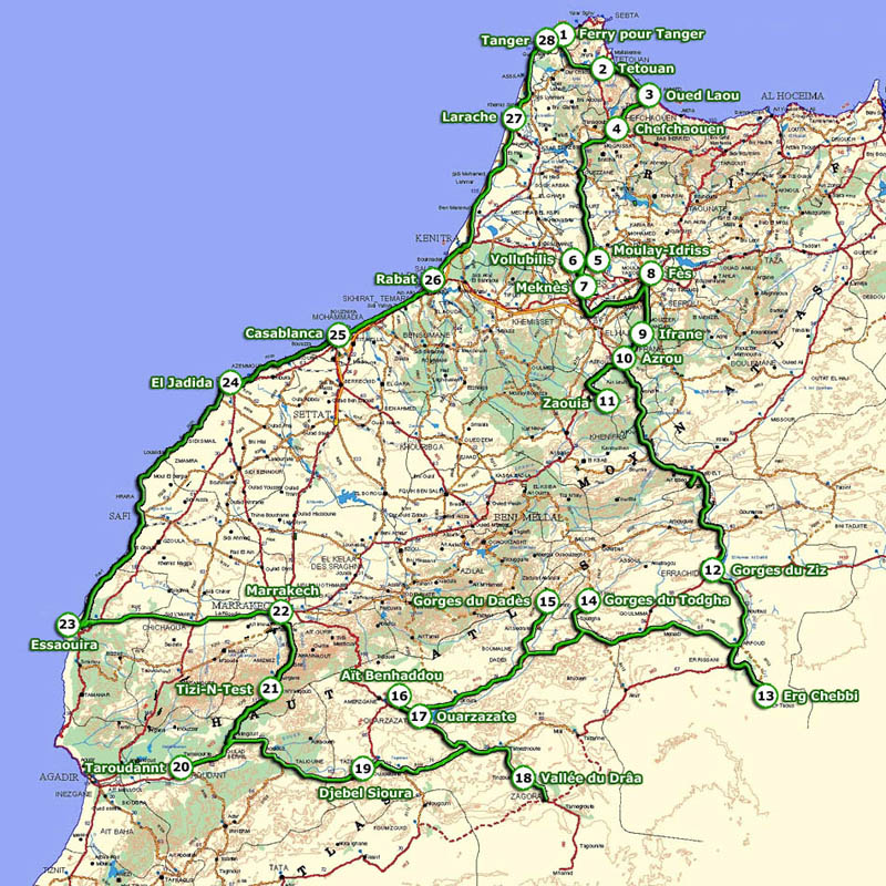 Zaouia Gorges du Ziz Erg Chebbi Gorges du Todgha Gorges du Dadès Aït Benhaddou Ouarzazate Vallée du Drâa Djebel Siroua Taroudannt Tizi-N-Test Marrakech 1 2 Essaouira 1 2 El Jadida Casablanca Rabat 1 2 Larache Tanger Galeries thématiques Conclusion Contact |