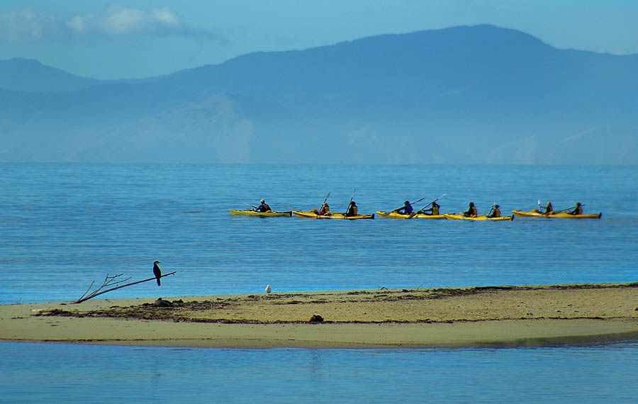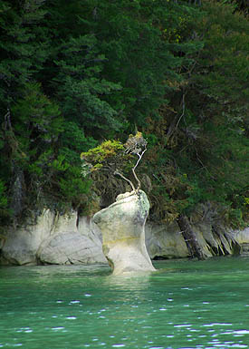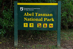 ![]() Nous avions prévu d'y nager avec les otaries à fourrure, c'est le seul endroit où on peut, mais la marée n'était pas favorable ces jours-ci. On a voulu se rabattre sur un tour en kayak de mer, mais ils demandaient un prix exorbitant (200 Euros la demi-journée !). Du coup on a simplement fait un grand tour à pied en partant de Marahau sur le "coast track", un sentier qui d'un détour à l'autre passe d'une ambiance de conte de fées à la jungle ou l'île déserte.