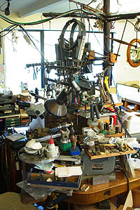 On y travaille très finement le paua (nacre) avec la machine compliquée ci-dessus, et c'est un centre