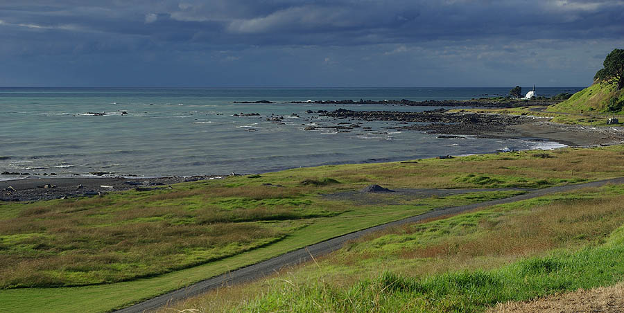 ![]() Ainsi nommée par James Cook, émerveillé par sa richesse naturelle et la douceur de son climat, la Bay of Plenty forme une immense boucle sur la côte nord. La route y serpente le long de la mer, offrant des points de vue extraordinaires sur les eaux turquoise du Pacifique sud. Ci-dessus, le bâtiment blanc est la petite église de Rokokore, de 1894, perdue sur un bout de rocher, reste des entreprises des missionnaires, qui semble bien dérisoire entre les falaises et les vagues... ![]() Whakatane est la principale ville de la baie. Son climat est particulièrement agréable et elle propose, comme souvent, des façades art déco plutôt mignonnes. Signalons un petit musée regroupant des objets maoris et des premiers colons européens.