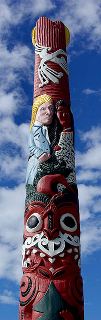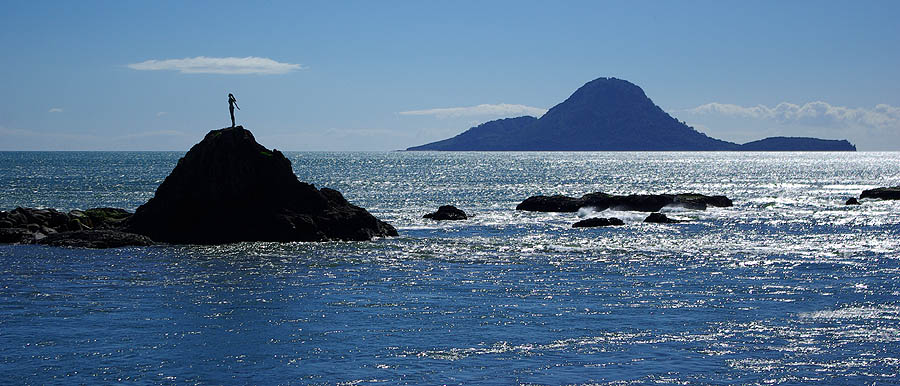 Dans la baie de Whakatane, la statue de Wairaka, fille de Toroa, capitaine de la pirogue Mataatua, une des premières embarcations légendaires ayant amené les Maoris, il n'y a pas si longtemps, sur Aoteroa (le "pays du long nuage blanc"). ![]() | |||||||||||||