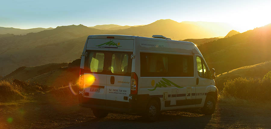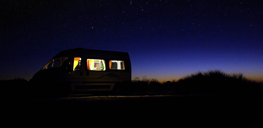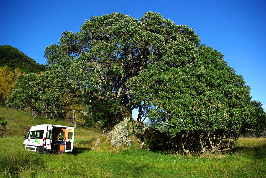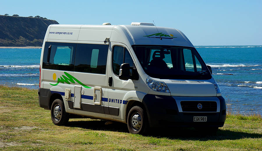 ![]() Il n'y a pas à dire, on est drôlement bien dans notre petit campervan, même si on a dû le changer deux fois pour des pannes (bah oui, c'est un Fiat). Mais le loueur United a été parfaitement efficace et gentil, et les remplacements quasi-immédiats. Les camping-cars de toutes tailles restent l'un des principaux moyens de déplacement touristique en Nouvelle-Zélande : du monospace avec simple couchette au camion-maison pour huit personnes, il y en a partout ! Ce n'est pas que les hôtels et B&B manquent, mais le camping s'accorde très bien avec les grands espaces et la liberté incomparable qu'on ressent dans ce pays. Cela permet aussi de voyager à l'économie, car pour à peine plus que la location d'une voiture, le camping-car comprend le transport, l'hébergement, la restauration (toujours moins cher de faire les courses au supermarché plutôt qu'aller systématiquement au restaurant), et l'autonomie suffisante dispense même la plupart du temps de payer un camping (même s'ils sont presque toujours abordables et absolument nickel).