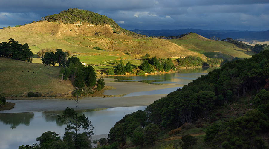 ![]() ![]() Plutôt que la route facile vers le sud, nous choisissons sans regret de suivre la côte, quitte à faire encore quelques heures de piste. Parmi les récompenses en chemin, la cascade "Bridal veil falls" (Chute du voile de la mariée) vers Raglan, des échappées sur des vallées sauvages ou en pâturages, des baies superbes... Même sur ces routes "brutes de décoffrage", la signalisation est impeccable, les virages indiqués à bon escient, les directions claires, les chemins de balade ou de randonnée et les aires de pique-nique précisément balisés. Pas besoin de bitume pour bien faire le travail ! ![]() ![]() Ci-dessus, la piste vers Te Papatapu. Ci-dessous, la baie Aukapu. ![]() ![]() Baie de Kawhia Harbour. L'inconvénient des pistes c'est qu'elles ne sont pas redondantes : si un éboulement ou un glissement de terrain rend une portion impraticable, il faut être prêt à rebrousser chemin, parfois sur une longue distance, avant de trouver une autre voie. Attention à l'autonomie, car si on est bien moins isolé qu'en certains endroits de l'Île du sud, les pompes à essence ne courent pas les pistes. ![]() | ||||||||||