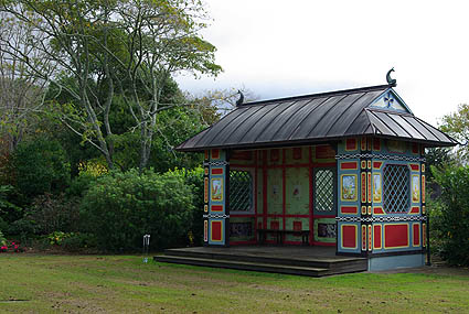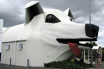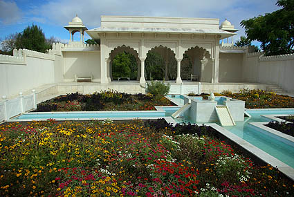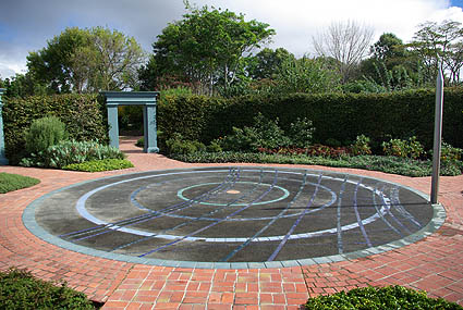 *Les deux photos ci-dessus ne sont pas de moi, mais on est passés juste devant ces drôles d'entrepôts, vers Tokoroa. ![]() Hamilton est une ville assez importante, sans grand attrait touristique, à part ses beaux jardins thématiques. La saison n'était pas optimale, mais c'était assez joli. Ci-dessous dans l'ordre, des exemples de jardins italien, indien et chinois, et un étonnant calendrier solaire.