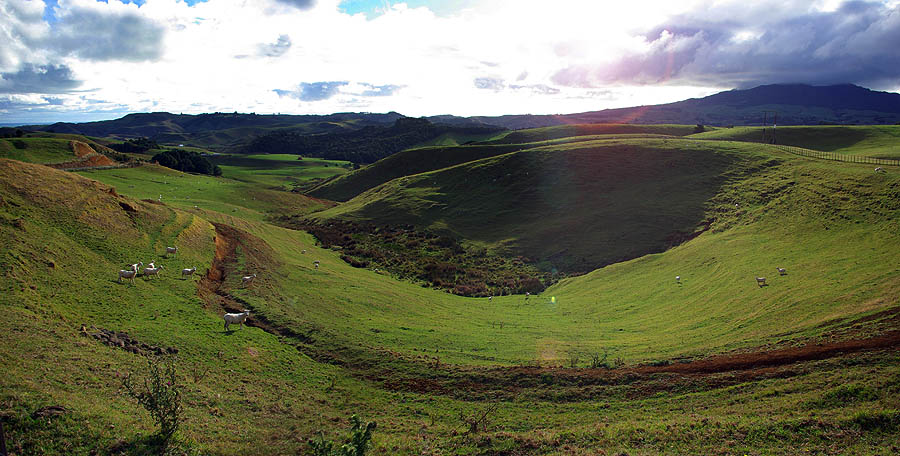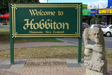 Pélerinage sur les lieux du tournage du Seigneur des Anneaux oblige, on s'est arrêtés sur la route vers l'ouest à Matamata, où avait été bâtie la Comté des Hobbits. Mais c'était sur des terrains agricoles privés et tout a été remis dans l'état d'origine... S'ils avaient prédit le succès du film, ils l'auraient sûrement conservée ! Ils proposent quand même la visite pour les fans, mais on l'a zappée, c'est hors de prix pour voir trois trous dans le sol. A noter qu'ils sont censés refaire les décors pour le tournage de Bilbo le Hobbit. Parions que cette fois ils conserveront plus de choses pour en faire une attraction touristique !