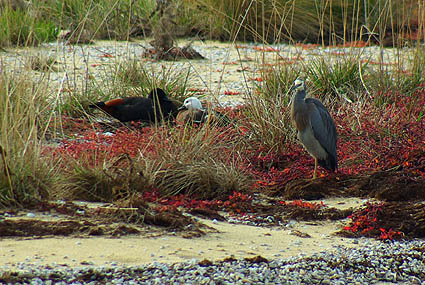 Les côtes et les lacs sont peuplés de cormorans, parfois en très grands groupes, ainsi que diverses espèces de hérons.