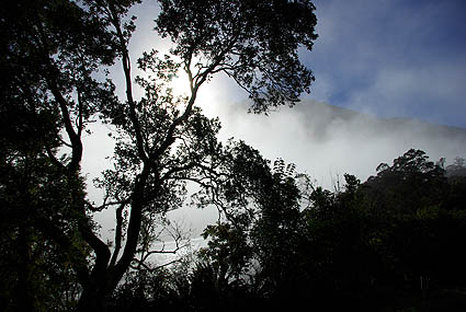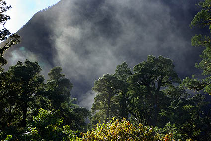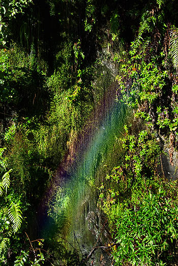 fait s'évaporer l'eau des feuilles, couvrant les forêts de brume même en plein midi, et faisant jaillir des arcs-en-ciel.