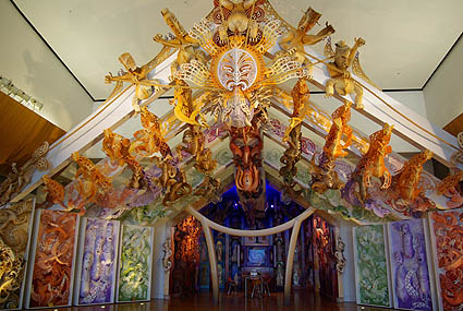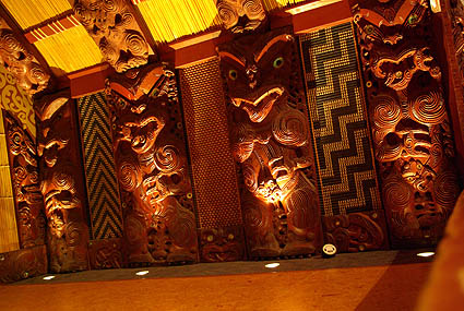 L'épopée du Seigneur des Anneaux est partout : un bijoutier de Nelson se targue d'avoir forgé les divers Anneaux de pouvoir du film, tous les offices du tourisme proposent des tours thématiques, les librairies sans exception ont plusieurs éditions de l'oeuvre de Tolkien et une abondante littérature sur le tournage... des haras proposent même de monter des chevaux ayant figuré dans la charge des Rohirrims ! On arrive à Wellington sous le déluge. Il pleut et il vente à tel point qu'au lieu de faire un tour en ville, on se réfugie au superbe musée Te Papa Tongarewa. On a revu avec grand plaisir et trouvé bien etoffées ses très belles collections. Mentions spéciales à la section sur l'art et la culture maoris, ainsi que le département sur l'immigration, exceptionnel.