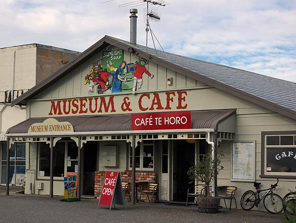 On poursuit la route vers le sud, avec un arrêt à Otaki qui, outre de l'artisanat maori, propose le très chouette Hyde Park Museum, au café Te Horo. Cette initiative privée et gratuite (mais les dons sont bienvenus) propose une accumulation d'objets de la vie quotidienne des années 20 à nos jours, avec reconstitutions de boutiques, d'ateliers, d'outillage agricole... C'est très fouillis, mais fascinant, visite chaudement recommandée.