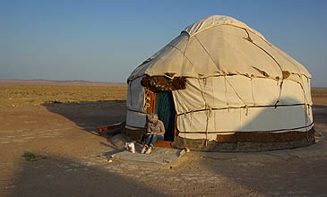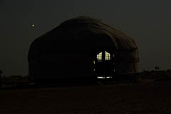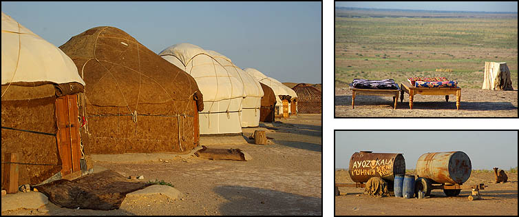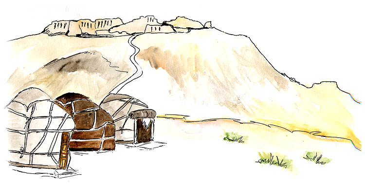 et pratiquement impossible de nuit. Mais tout va bien ! Un camp de yourtes confortable est installé au pied d'Ayaz Qala. On y est