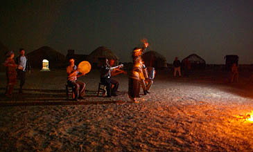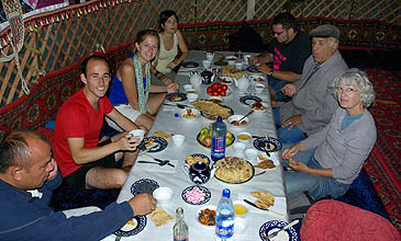 reçu avec beaucoup de chaleur, le dîner arrosé de thé et de vodka est excellent, et ensuite... musique et danse sous la lune !
