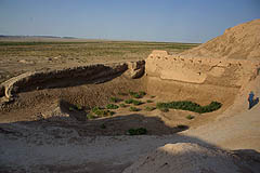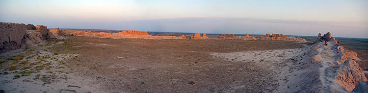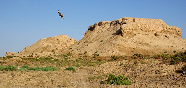 Au nord de Khiva s'étend une région habitée depuis des millénaires, Khorzem, où se trouvent les ruines des villes et des forts qui parsemaient