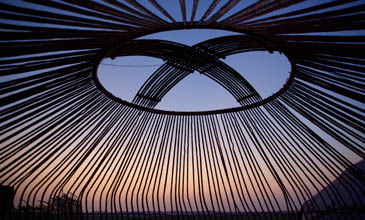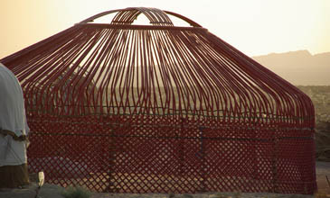 Les yourtes ouzbèques sont différentes des mongoles, plus connues en Occident. Sans pilier et plus en hauteur, avec souvent des portes en feutre plutôt