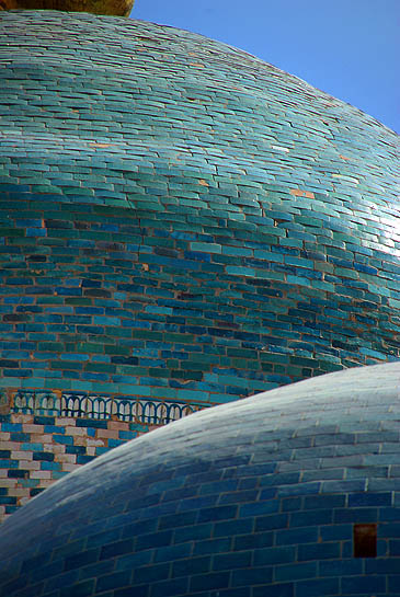 (ci-dessous au centre Kutlimurodinok), et les dômes étincellent en turquoise sur le ciel bleu intense.