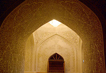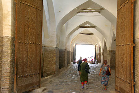 dans des niches de part et autre des longs passages couverts (ci-contre Polvon Darvoza, porte de l'Est) les "vitrines" où ils étaient exposés. Ces passages sont en fait les portes de la ville,