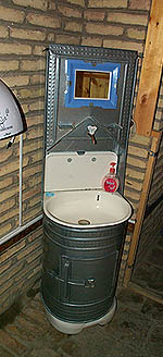 Les restaurants proposent ce genre de lavabo portable pour rincer la poussière de la route avant de se mettre à table.