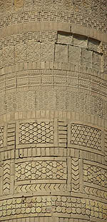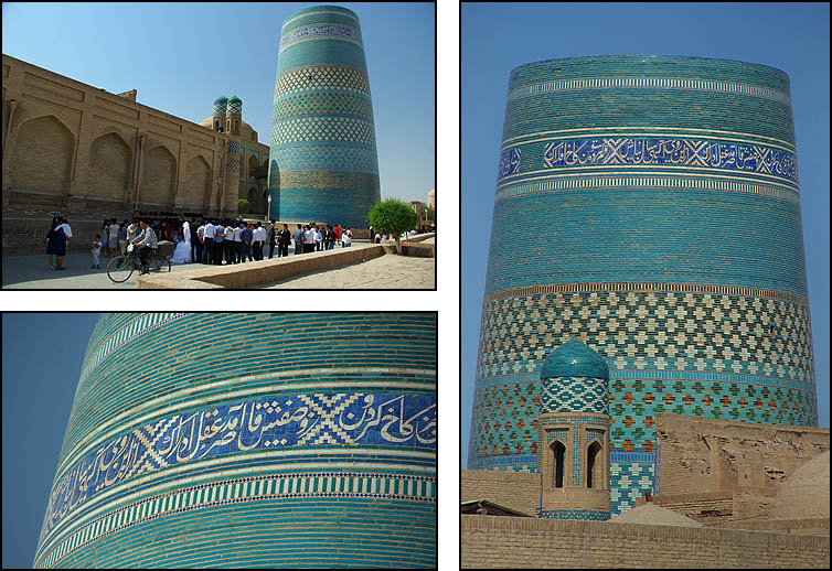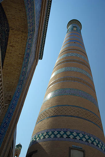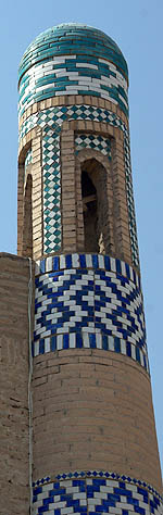 Ci-dessus le Kalta Minor, ou minaret court, adossé à la madrasa Mohammed Amin Khan. Ce minaret devait culminer à 70 mètres mais les travaux ayant été abandonnés