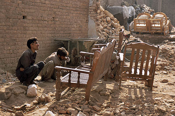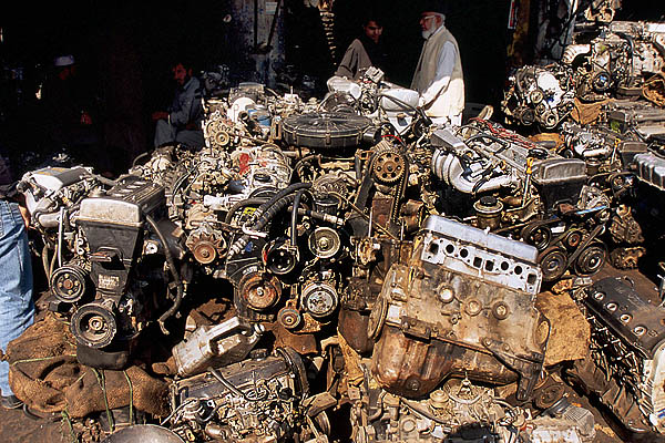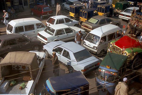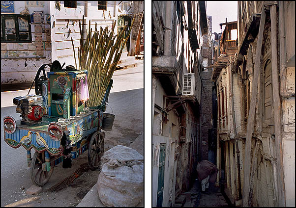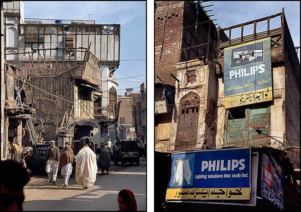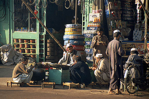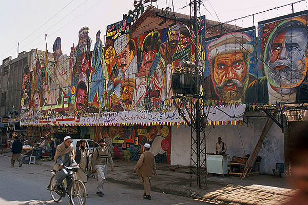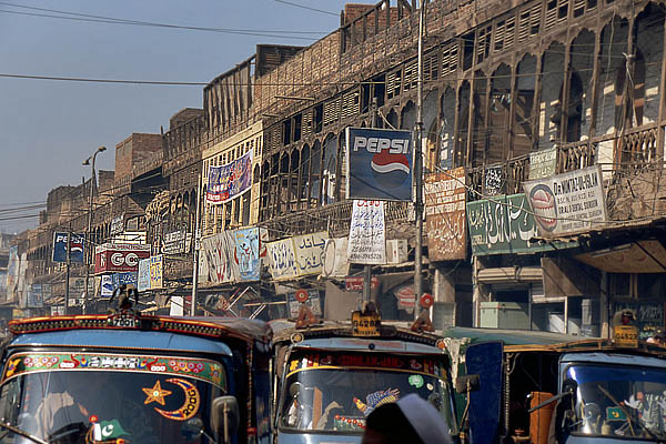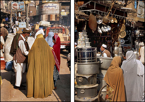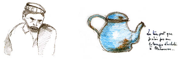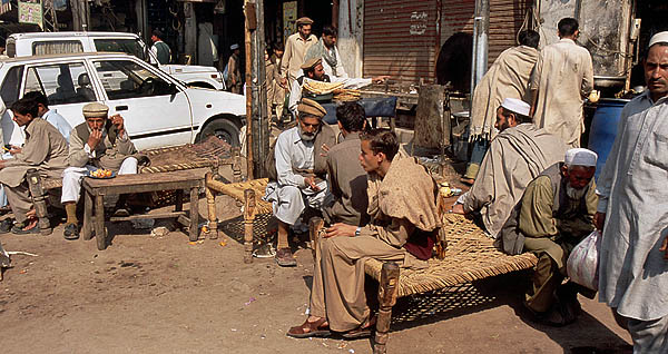 ![]() La circulation à Peshawar est un peu... embrouillée, mais contrairement aux apparences, ça finit toujours par se demêler. Peshawar est à quelques dizaines de kilomètres des zones tribales pashtounes (y voyager ? même pas en rêve, les lois du pays ne s'y appliquent pas et l'armée elle-même ne s'y risque guère) et de la frontière afghane (Kaboul n'est qu'à 200 kilomètres, on y serait bien allé...). Ici aussi on trouve une belle architecture de bois - qui ressort d'autant plus qu'il n'y a presque aucun bâtiment moderne - mais comme partout complètement délabrée, dénaturée et menaçant de s'écrouler sur les passants. ![]() ![]() ![]() L'industrie cinématographique n'est pas du tout florissante au Pakistan, les films proviennent essentiellement de l'Inde avec leur lot de gros méchants, de héros joufflus et d'héroïnes hystériques en détresse. ![]() Le formidable bazar Ander Shahar, avec notamment sa rue de l'or et une persistance plus grande qu'ailleurs de produits et matériaux traditionnels (terre cuite et cuivre plutôt que plastique). ![]() ![]() ![]() ![]() ![]() ![]() Ci-dessus, pause dans un "salon de thé". Le chaï omniprésent est vraiment très bon et reconstituant : on fait bouillir les feuilles de thé dans l'eau, on ajoute du lait bouilli (pas pasteurisé !), on refait bouillir le tout, on ajoute éventuellement quelques épices comme la cardamome, le gingembre ou du piment, on refait bouillir un coup, et on boit dans de tous petits verres. On trouve aussi du thé vert, à la préparation classique à l'eau, appelé alors "Frontier style tea". ![]() ![]() Ci-dessus à gauche, vente de jus de canne à sucre (à éviter absolument sous peine de désagréments intestinaux !). ![]() Ci-dessus et dessous, des restaurants de rue. L'hygiène n'est pas au rendez-vous, mais c'est bien bon. On s'assoit sur des charpoys, ces lits de corde tressée qui servent tout autant de siège que de table ou de couchage et se retrouvent dans tout le sous-continent. ![]() ![]() ![]() ![]() ![]() Il vous faut quelque chose ? |