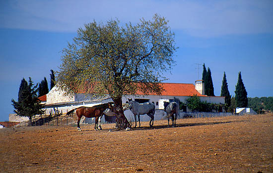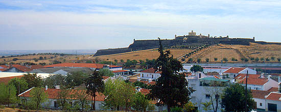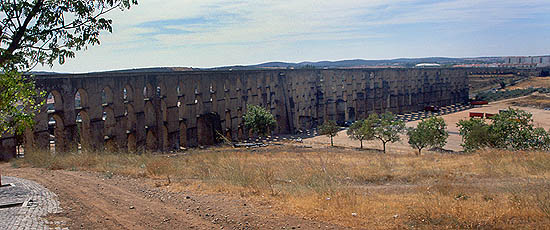 toute blanches soulignées de jaune. Sans oublier extra-muros de très nombreux lotissements récents.![]() ![]() Le Largo de Santa Clara. ![]() L'aqueduc d'Amoreira, édifié au XVIème siècle et long de sept kilomètres, alimente toujours la ville en eau. D'ailleurs, cette année surtout, le manque d'eau a été dramatique. Il n'avait pas plu depuis dix mois, les rivières étaient à sec et la terre extrêmement assoiffée. Les récoltes en ont beaucoup souffert et les incendies (surtout au nord) ont été particulièrement destructeurs. ![]() ![]() A quelques kilomètres, un détour par le village de Campo Maior à l'heure de la sieste, complètement endormi. ![]() Ci-dessous, un "monte", grosse ferme de propriétaire terrien. ![]() |