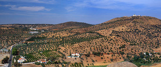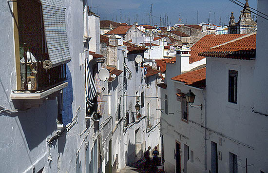 Configuration caractéristique de l'Alentejo et de l'Algarve : bourg perché aux ruelles abruptes,