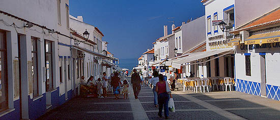 à Vila Nova de Milfontes, petit bourg tout de bleu et de blanc, touristique mais n'ayant pas (encore ?) cédé