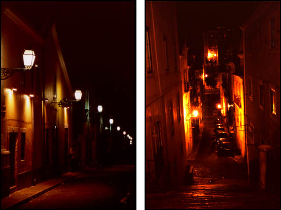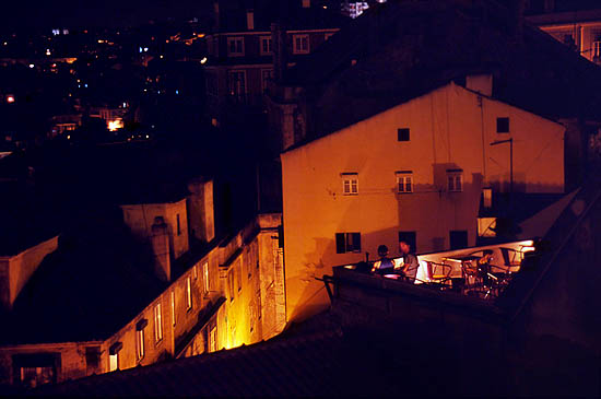 Lisbonne la nuit, autre interprétation d'une ville lumière, toute en tons chauds et