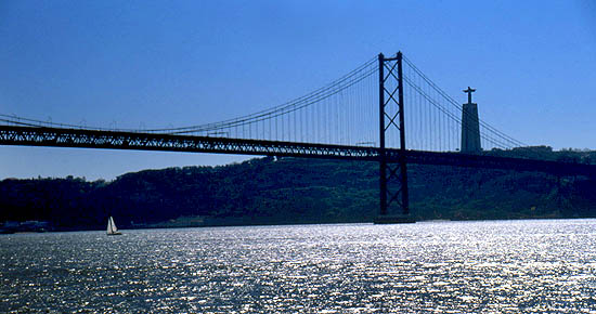 depuis le milieu du Tage, mais le fleuve a reculé et la tour se trouve maintenant sur la berge, au bout du port.