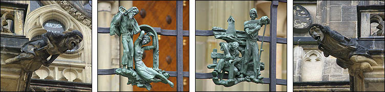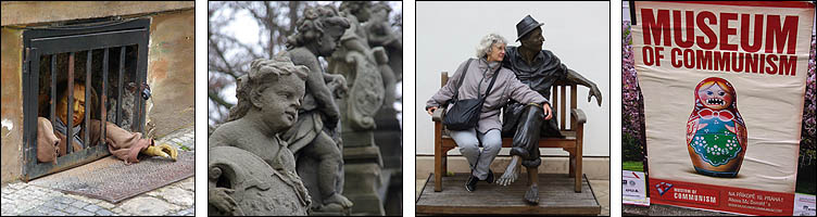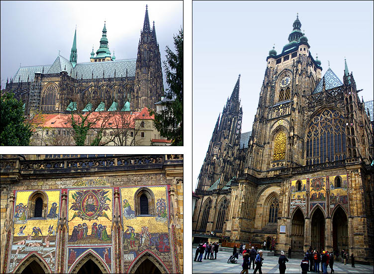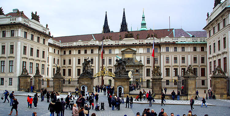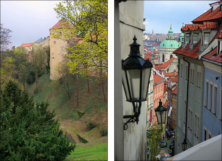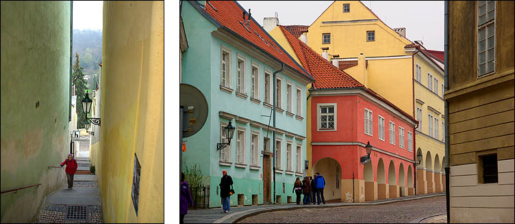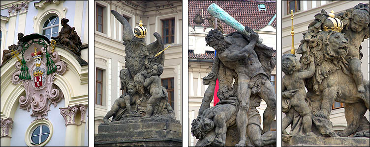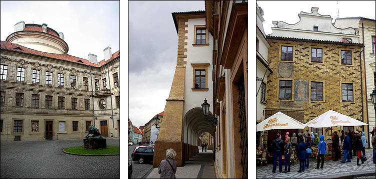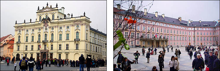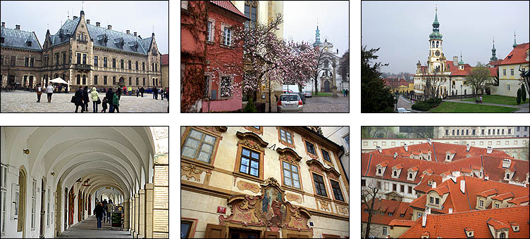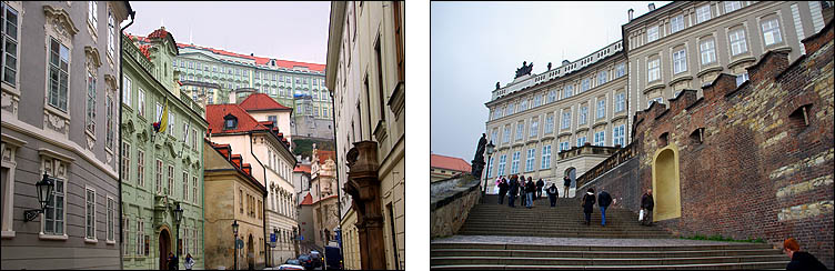 ![]() Hradcany est l'une des plus anciennes cités à l'origine de Prague, sur un promontoire dominant une boucle de la Vlatva. Le château date du XIème siècle et a été constamment agrandi, modifié, modernisé, jusqu'à couvrir l'essentiel de la colline, formant un ensemble gigantesque. ![]() ![]() La monumentale grille qui ferme la cour principale est ornée d'impressionnants gardiens, dont des Maures armés de gourdins. Un drapeau indique si le président est présent dans le pays. Un peu dommage que les réfections du XVIIIème siècle soient si uniformes et dénuées de charme. ![]() ![]() ![]() La construction de la cathédrale St Guy a duré de 1344 à 1929, fallait pas être pressé. L'architecte Matthieu d'Arras lui a donné le style des grandes cathédrales françaises. ![]() ![]() ![]() Ci-dessous à droite, Notre-Dame de Lorette, symbole de la Contre-Réforme du XVIIème siècle. ![]() ![]() Autour et dans le prolongement du château, un quartier huppé regroupe hôtels particuliers, musées et palais. Ci-dessus, le palais Schwarzenberg avait l'ambition de rivaliser avec LE palais lui-même, il a plus tard inspiré les architectes cubistes avec ses motifs géométriques en trompe-l'oeil et sgraffito. ![]() ![]() ![]() Ci-dessus le beau palais Martinic orné de scènes de la Bible, qui abrite des voitures de collection du début du siècle... et est voisin de la maison où ont été tournées des scènes du film "Amadeus" de Milos Forman. ![]() ![]() ![]() ![]() Ci-dessus à gauche, le très chouette musée du palais Schwarzenberg, avec un restaurant méconnu fort agréable pour un snack. Tout le contraire du piège à touristes à droite, plus représentatif hélas de ce qu'on trouve, où on s'est fait escroquer en beauté, notamment en découvrant après coup que la bouteille de 50 cl d'eau nous était facturée 4,5 €, sans oublier que, tradition désagréable mais courante en Europe de l'Est, les prix des plats de viande sont affichés pour 100g. Méfiance, ça monte vite. Dans le même genre, Zlata Ulicka est une jolie ruelle pleine de boutiques en contrebas... qu'ils ont réussi à rendre payante ! Oui, l'accès à la pittoresque rue commerçante demande un ticket pas donné, bon résumé de la mentalité regrettable qui règne en saison touristique. En redescendant des hauteurs du palais, on traverse un quartier plutôt bien préservé et sympa, avec en prime de belles échappées sur la ville. ![]() ![]() ![]() Pour l'anecdote, les uniformes des gardes présidentiels ont été dessinés par le costumier du film Amadeus, à la demande de Vaclav Havel pour changer des vareuses kaki héritées des Soviétiques. ![]() ![]() |