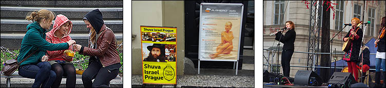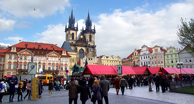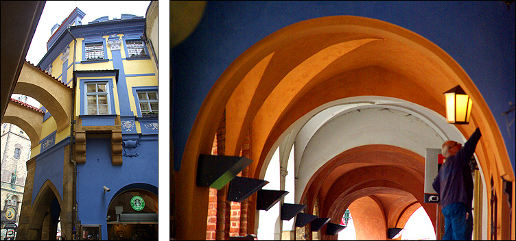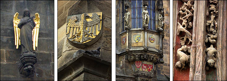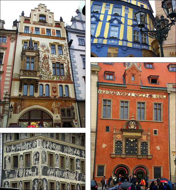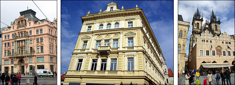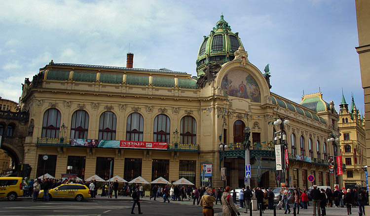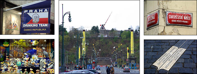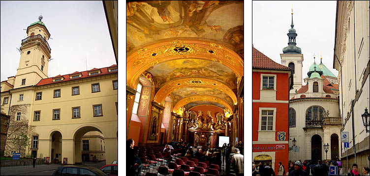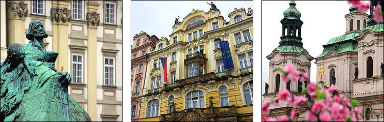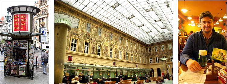 ![]() La place Staromestské Nàmesti, à l'origine de la ville basse, a vu passer tous les grands événements de la cité. Nous y étions à Pâques et elle était couverte des stands d'un des nombreux "marchés de Pâques", scène de concerts, etc. La place est encadrée de superbes bâtiments, multicolores parfois baroques, parfois gothiques. Notre-dame de Tyn date du XIVème siècle, c'était le centre du mouvement hussite vers 1458. ![]() ![]() Ci-dessus la statue de Jean Hus, prédicateur réformateur, critique de la richesse et de la vénalité de l'église, qui fut brûlé vif en 1415. Ci-dessous, ces arcades gothiques sous une maison Rennaissance, mènent à la cathédrale. ![]() ![]() ![]() Le Klementinum était un immense collège jésuite, occupant tout un pâté de maisons. Il en reste la superbe bibliothèque baroque. Ci-dessous au centre, la chapelle aux mirroirs, ainsi nommée pour l'utilisation originale de mirroirs disposés sur le plafond et les murs. C'est aujourd'hui une salle de concert pour la musique de chambre. ![]() ![]() Si la bibliothèque moderne Ustredni Knihovna, malgré quelques éléments art nouveau, n'a pas le faste de l'ancienne, son hall abrite une étonnante tour de livres, monument de papier et de miroirs semblant infini. ![]() ![]() Dès la fin de l'ère communiste, d'immenses travaux de restaurations ont donné à Prague des couleurs éclatantes, qui égayent la cité... malgré le temps plombé que nous avons généralement eu ! ![]() La tour Poudrière (à gauche) est un vestige des remparts de la vieille ville, datant du XIVème siècle, mais avec un décor remodelé au XIXème. Son toit s'ajoute aux innombrables tourelles, clochers et encorbellements qui agrippent les nuages. ![]() ![]() Réalisée au début du XVème siècle et perfectionnée au XVIème, la grande horloge est composée de deux cadrans qui animent les statues des douze apôtres. Celui du haut indique l'heure, le jour, le mois, la température, et suit le mouvement du soleil et de la lune - mais la Terre est considérée comme le centre de la galaxie. Les personnages de part et d'autre du cadran s'animent à chaque heure. Le cadran du bas ajouté au XIXème est un calendrier où les mois sont représentés par des scènes paysannes. ![]() ![]() ![]() La Maison Municipale a été achevée en 1912, mêlant le baroque à l'art nouveau, elle était téchniquement très bien équipée pour l'époque : ascenseurs, climatisation, chauffage central. La décoration tant intérieure qu'extérieure est impressionnante et très raffinée : statues, mosaïques, vitraux, faïences, fer forgé, luminaires, stucs, marbre... ![]() ![]() ![]() ![]() ![]() Ci-dessus au centre, la poste. A droite, une bière de saison, la Na Zeleny Cturtek, d'un beau vert, parfumée au thym, menthe et aneth. Ci-dessous au centre, le métronome géant de Vratislav Karl Novák, sur la rive nord, occupe depuis 1991 l'emplacement d'un monument dédié à Staline (détruit en 1962). ![]() |