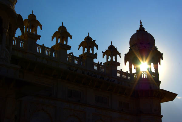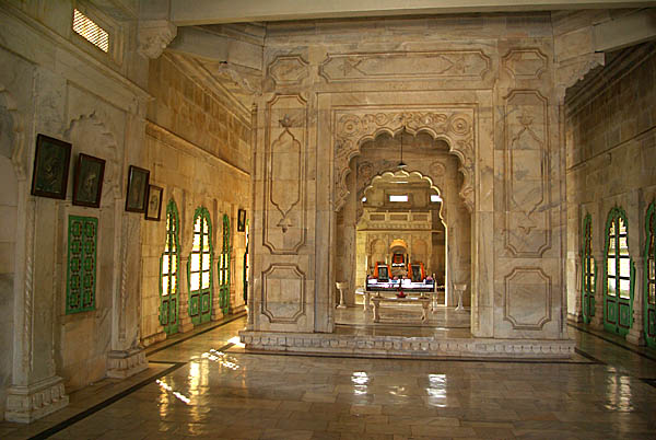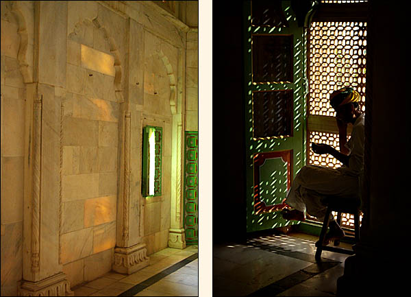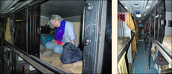 ![]() Perché sur une colline en face du fort, à quelques kilomètres du centre-ville qu'on n'est pas fâchés de parcourir en rick-shaw (ci-dessus à gauche) étant donné la pente et l'aridité des alentours, se trouve Jaswant Thada, le mémorial du maharajah Jaswant Singh II, construit par sa veuve en 1899. ![]() ![]() ![]() ![]() ![]() Le marbre blanc est si fin par endroits qu'il en est translucide, renforçant son aspect ethéré. Il y règne un calme serein et une fraîcheur très agréable. L'air est plein de roucoulements d'oiseaux (de simples pigeons en fait) et la verdure des jardins contraste avec la roche nue des alentours. Comme le dit le Lonely Planet, c'est "the definite tomb vith a view" (la meilleure des tombes avec vue). ![]() ![]() ![]() ![]() Pour gagner Udaipur pas de place de train, le réseau ferré étant perpétuellement overbooké, alors on tente les car-couchettes. On réutilisera plus tard ce mode de transport plutôt récent, de qualité très inégale, mais somme toute bien pratique pour gagner du temps en voyageant de nuit sans arriver trop cassés. ![]()